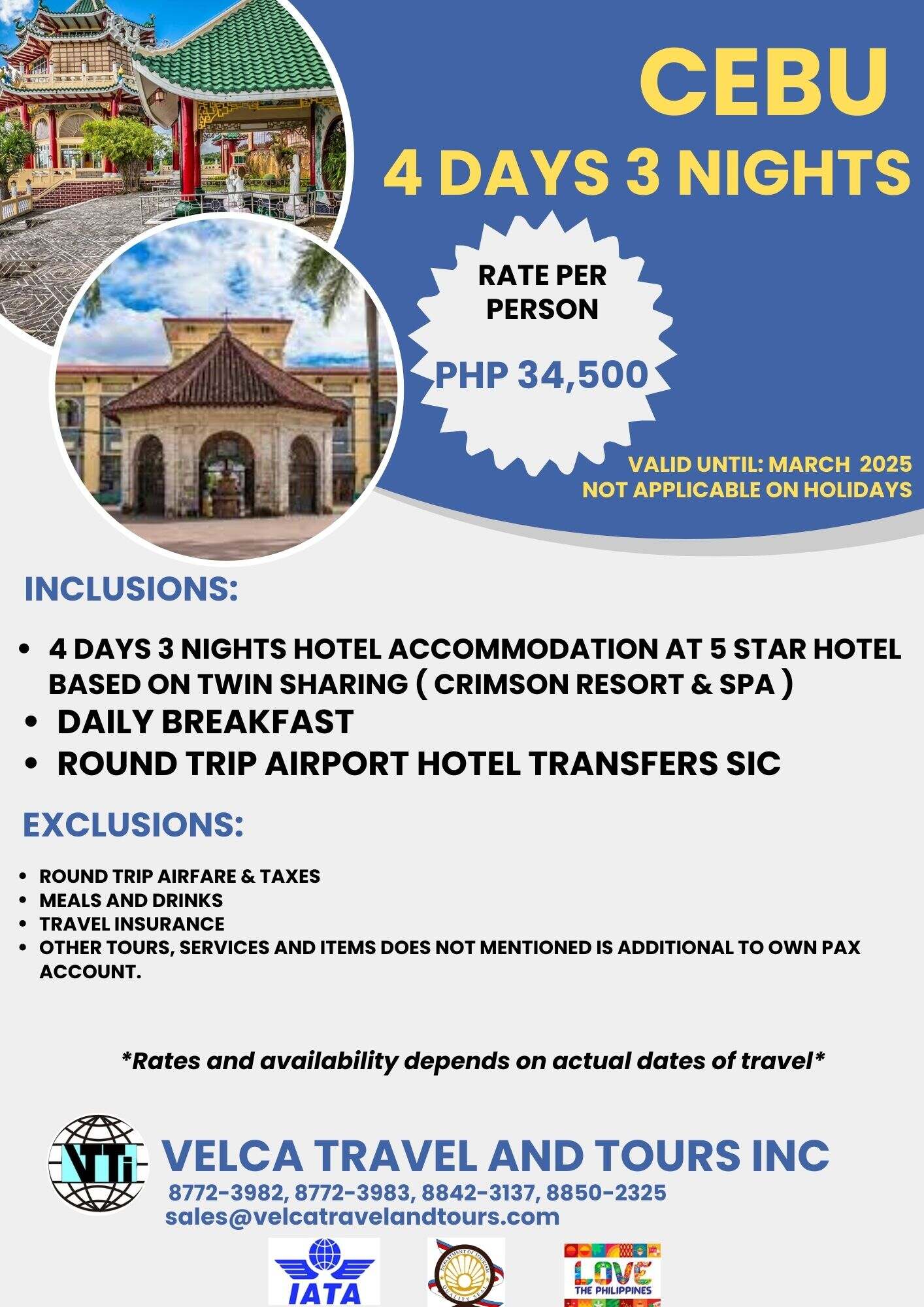 Cebu City know as " Queen City of the South ". Cebu City, the capital of Cebu, is considered to be the oldest city in the Philippines. It is also known as the oldest settlement established by the Spaniards in the country. Today, when one speaks of Cebu, it means relaxation, luxury, pleasure, and fun, all in one island. For in Cebu, everything is at stake: beautiful resorts, luxury and budget hotels, breath taking mountains, amazing fun activities, myriad choice of luscious restaurants, and a lot more.